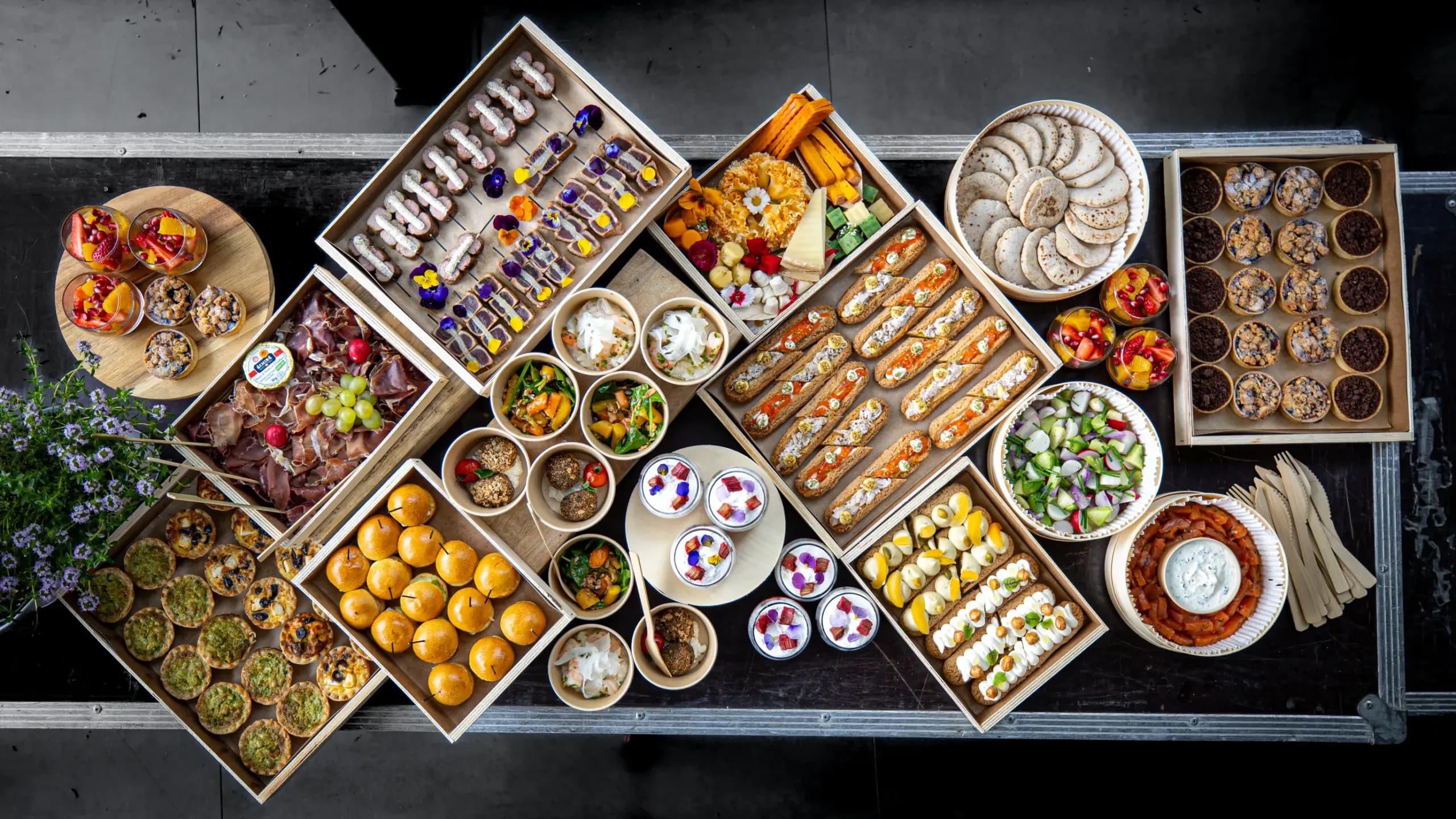 Le buffet, c’est la formule généreuse et conviviale par excellence. Des salades croquantes, des tartes fondantes, des douceurs sucrées, de la street food, des bars à mozzas, et des plats végétariens ou vegans.